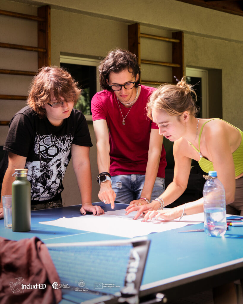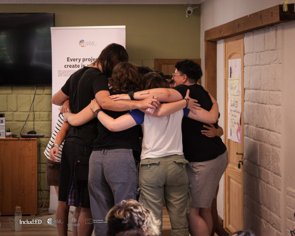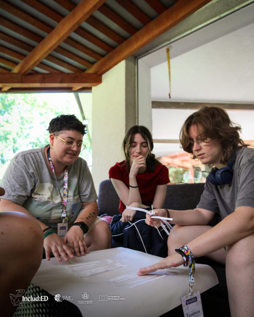 We are Ambra, Ross, and Nicolò, the Italian team that participated in the training course “Includ-ed, queering sexual education.” We would like to share our reflections on the experience we just had. It is very exciting to think back on it after almost a month, and to find ourselves together again, even from a distance (since Nico does not live in Bologna), to talk about the magical moments we had.